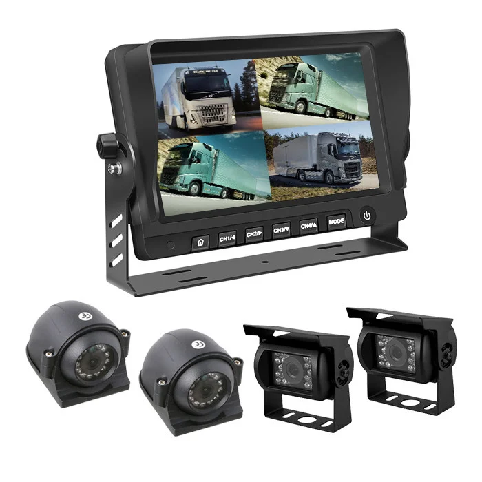 Professioneel 9 inch HD Quad View Achteruitrijcamera-systeem met verwarmde camera 's
