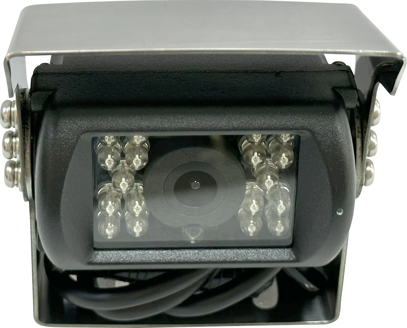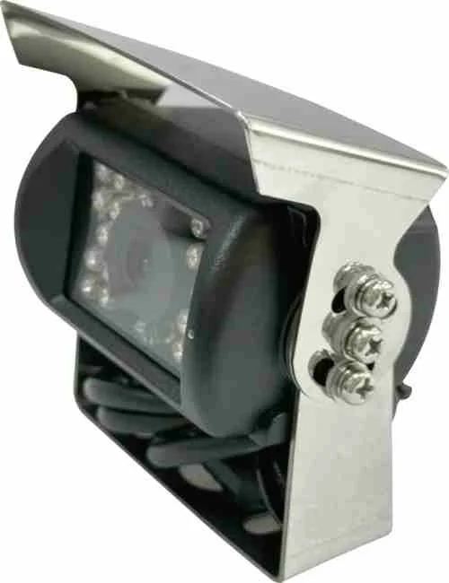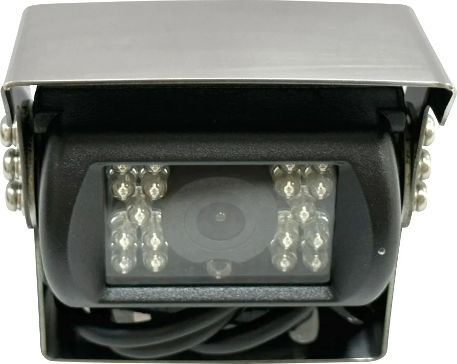 Full AHD kleuren achteruitrijcamera met roestvrij stalen zonneklep en beugel.